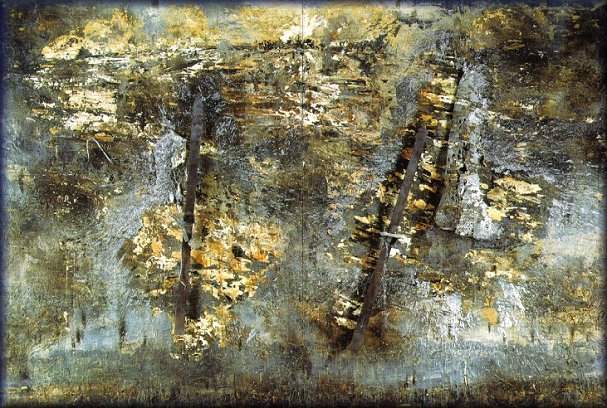 ![]() Anselm Kiefer: Jerusalem Painted: 1986, Acrylic, emulsion, shellac, and gold leaf on canvas. With steel and lead, 380 x 560 cm,Collection of Susan and Lewis Manilow Chicago |