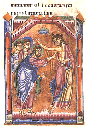 zu greifen, die offene Seitenwunde. Damit zeigt das Bild aus unserem Perikopenbuch